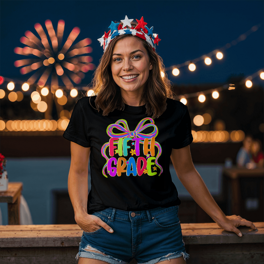 Neon Bow Fifth Grade Team Teacher T-shirt
