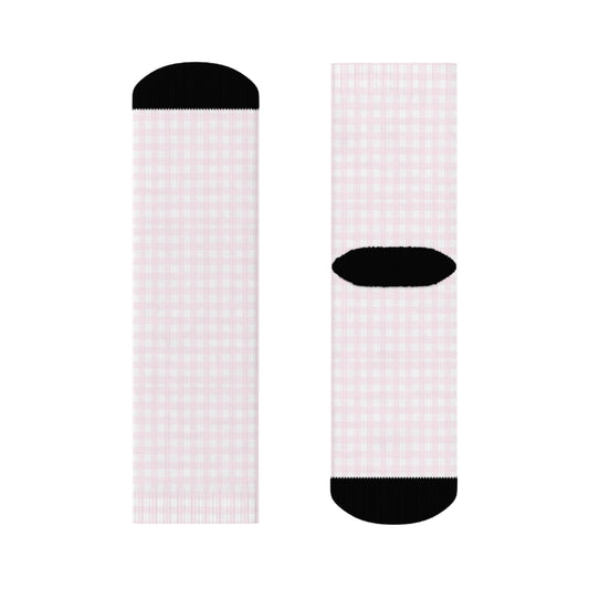 Coquette Pink and White Plaid Crew Socks
