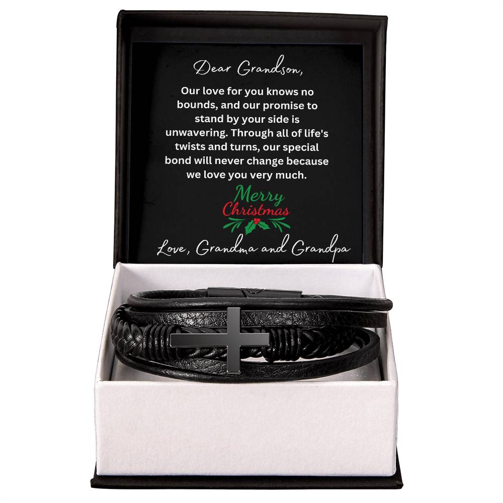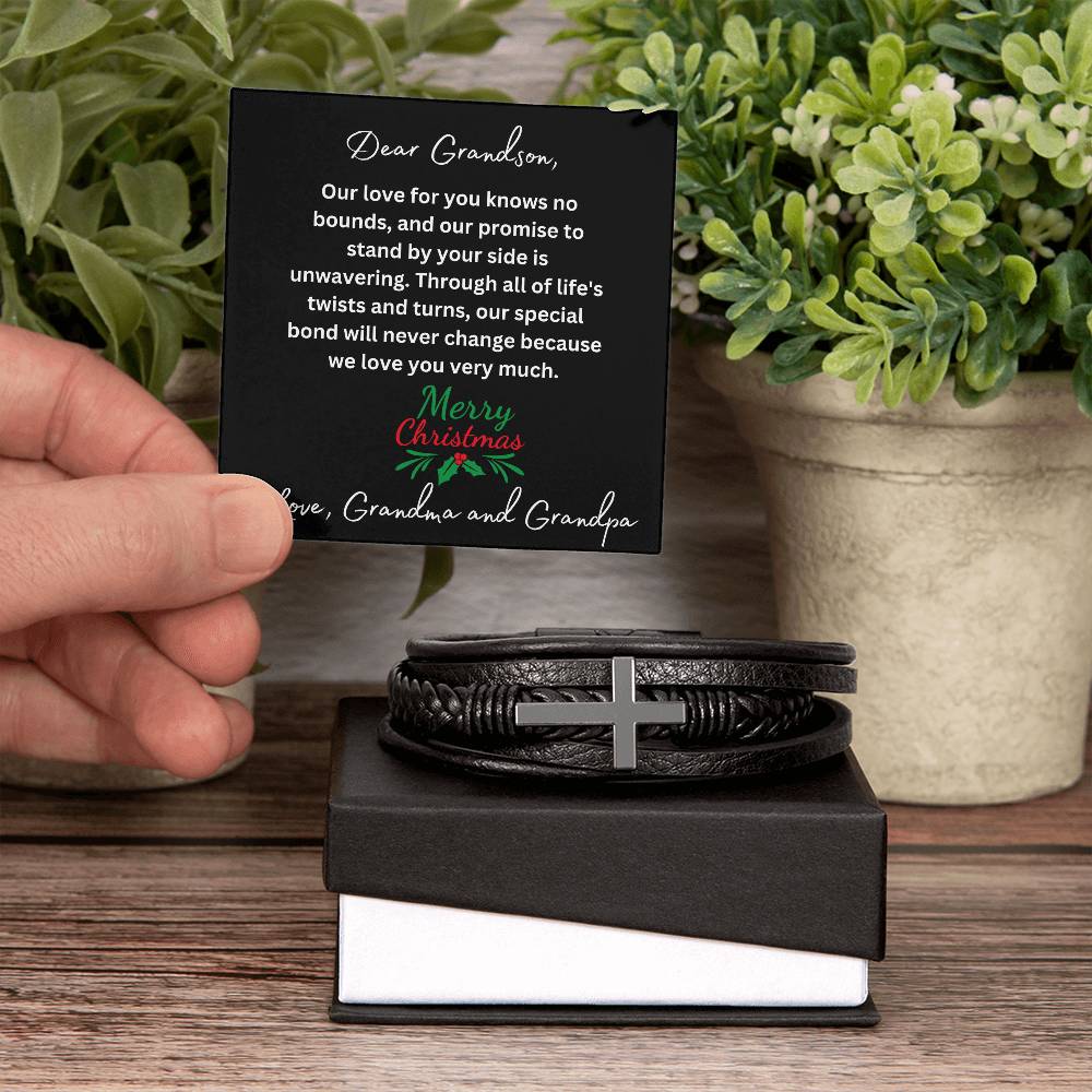 Christmas Grandson Leather Cross Bracelet