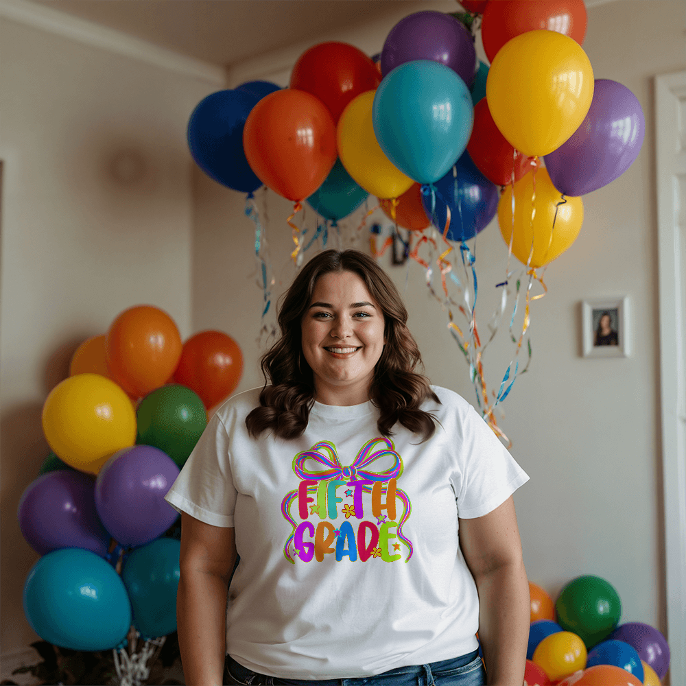 Neon Bow Fifth Grade Team Teacher T-shirt