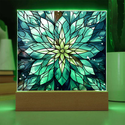 Your plaque will be crafted from premium acrylic with a professionally printed design for a polished look. It comes with a stylish wooden LED base, and you can choose between a USB plug-in option OR a cordless battery-operated option (requires 2 AAA batteries, not included). Both LED bases feature 7 vibrant colors, allowing the user to customize the lighting with various color changes and dynamic cycles.