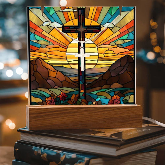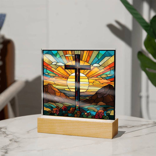 Sunrise Cross Square Acrylic Plaque
